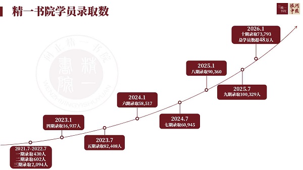 本次典礼上,73793名新学员正式加入精一书院,至此,这座成立于2021年的公益中医教育平台,总学员规模已突破48万人,成为全球规模领先的中医学习社区。